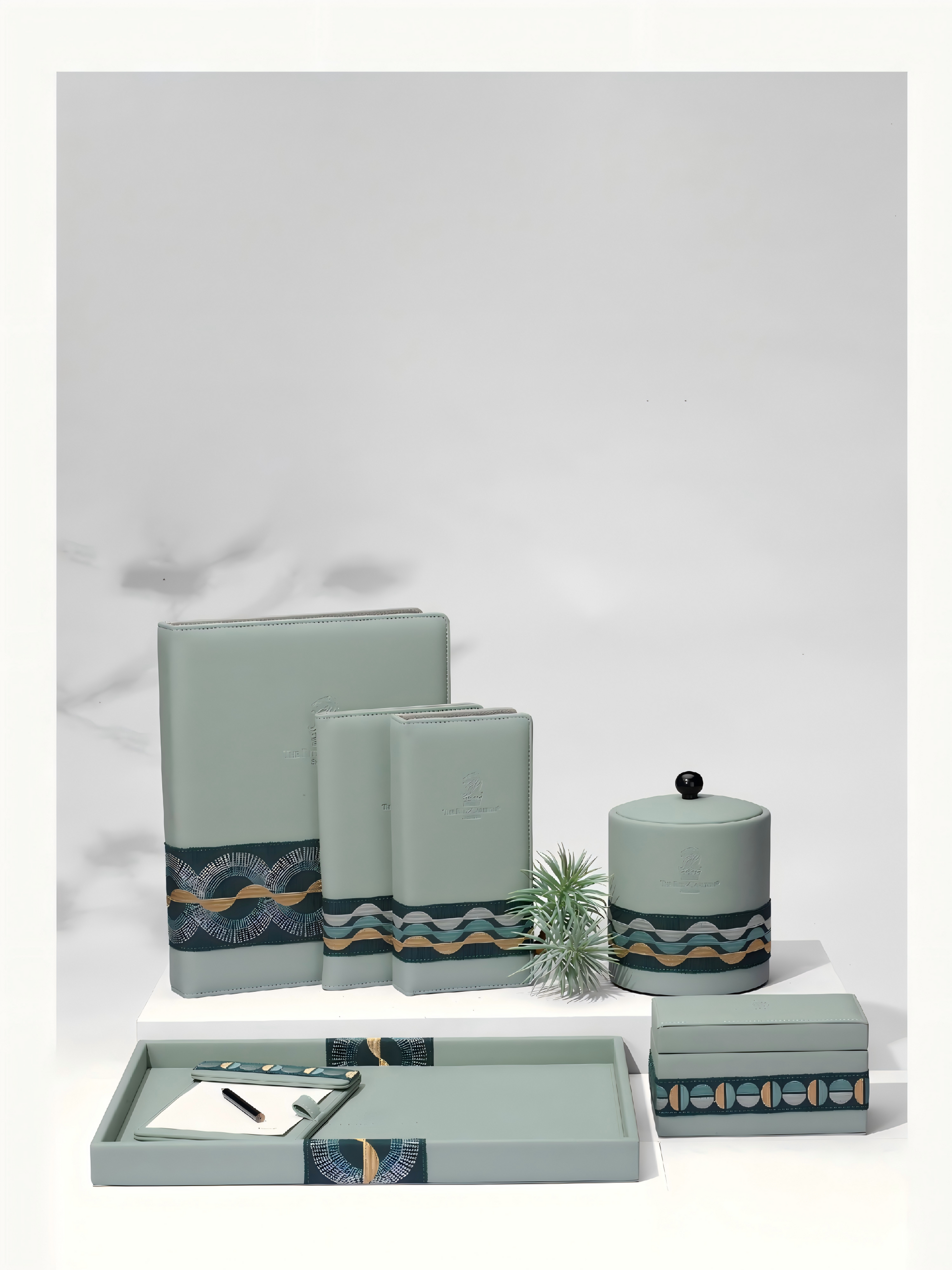 This customized PU leather product features a fresh green tone combined with intricate woven details, offering both durability and an elegant design. Ideal for those seeking sophisticated style with a sustainable edge, it blends practical material qualities with visually appealing craftsmanship.