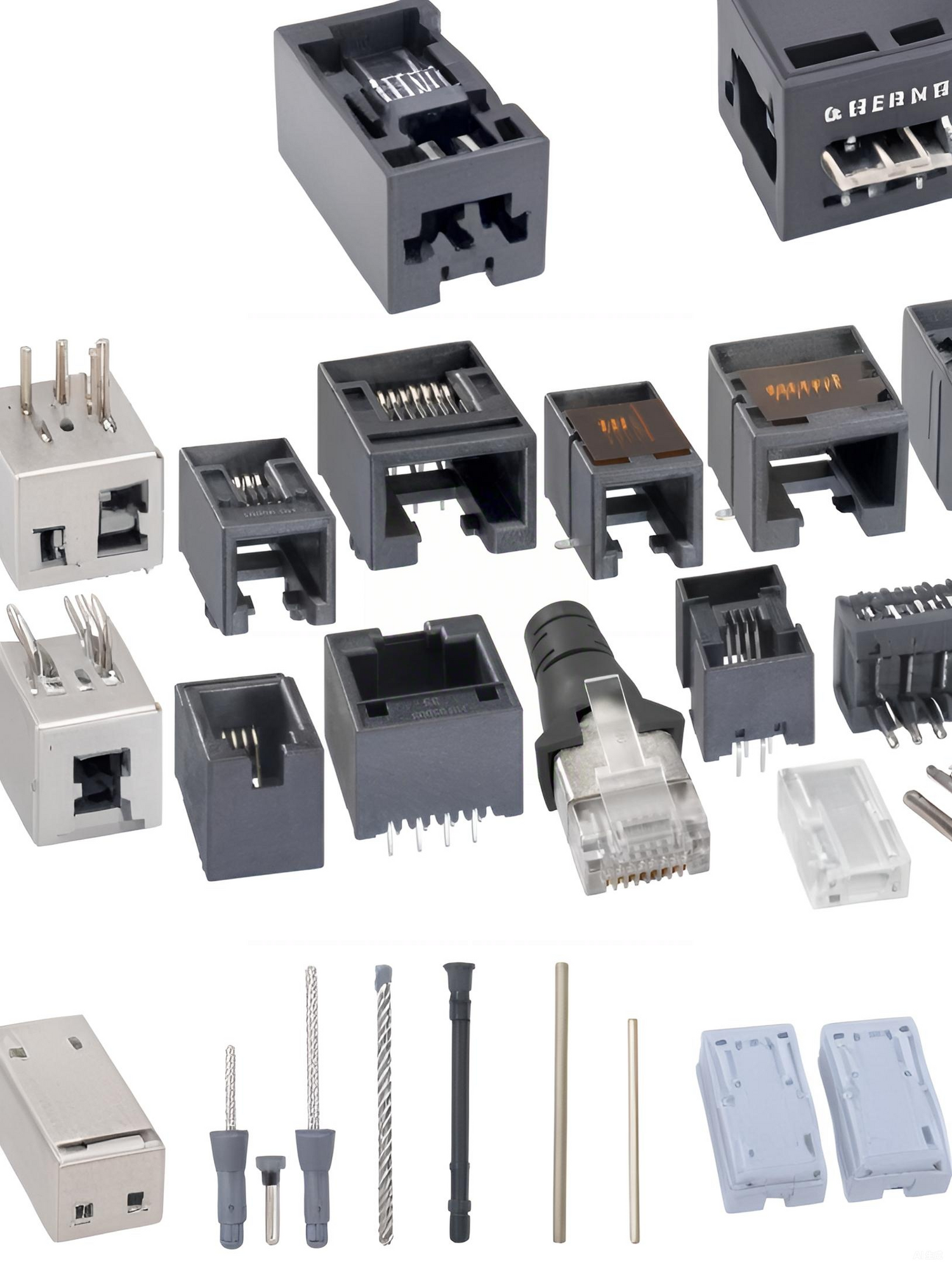 Female component of a modular connector system, designed to receive a modular plug (the male component) on the end of a cable.